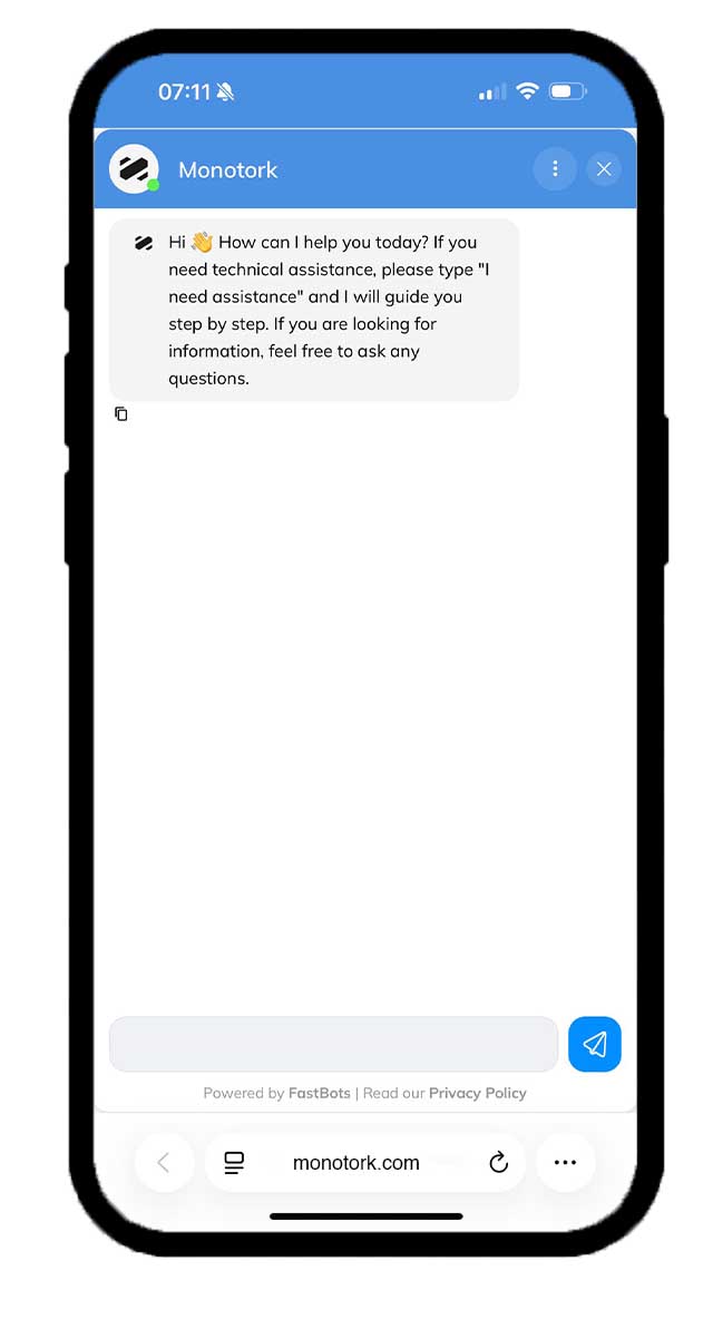 Simply open the chat and write “I need assistance” to get direct support.